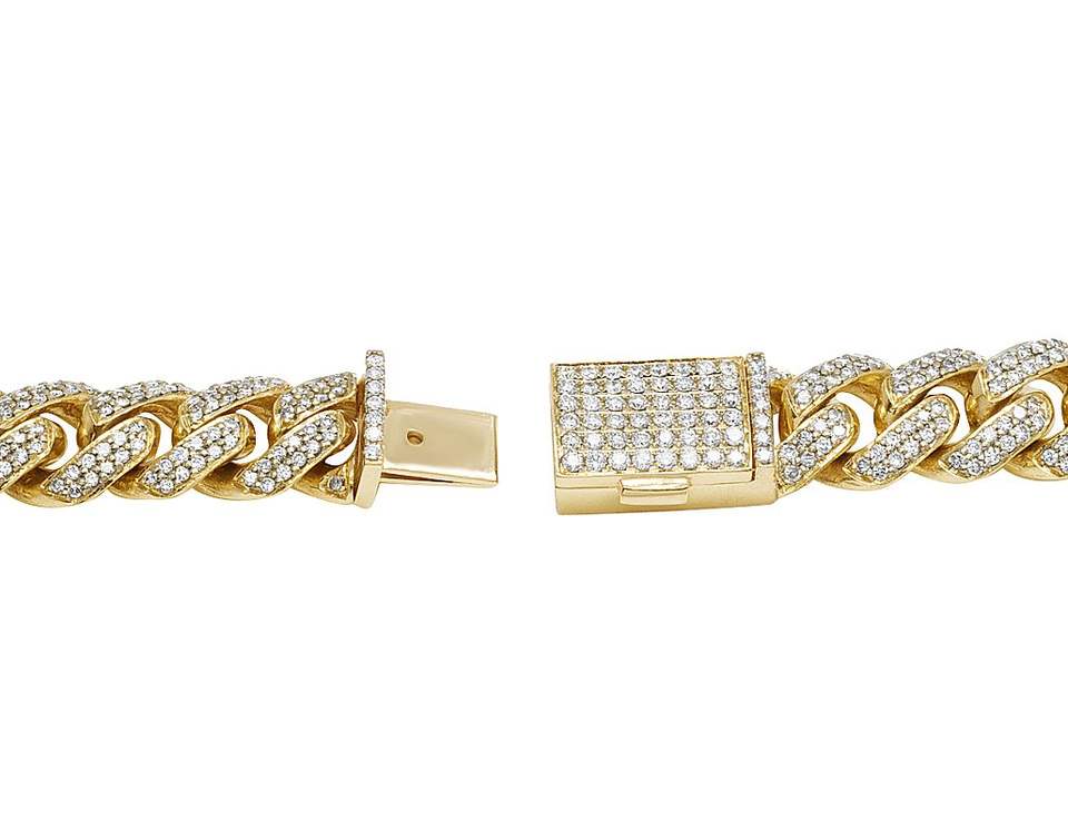 สร้อยคอเพชรแนวคิวบาสีเหลืองทอง10K พร้อมเครื่องประดับสำหรับผู้ชายสร้อยคอเพชรที่ปลูกในห้องปฏิบัติการหรูหรา
