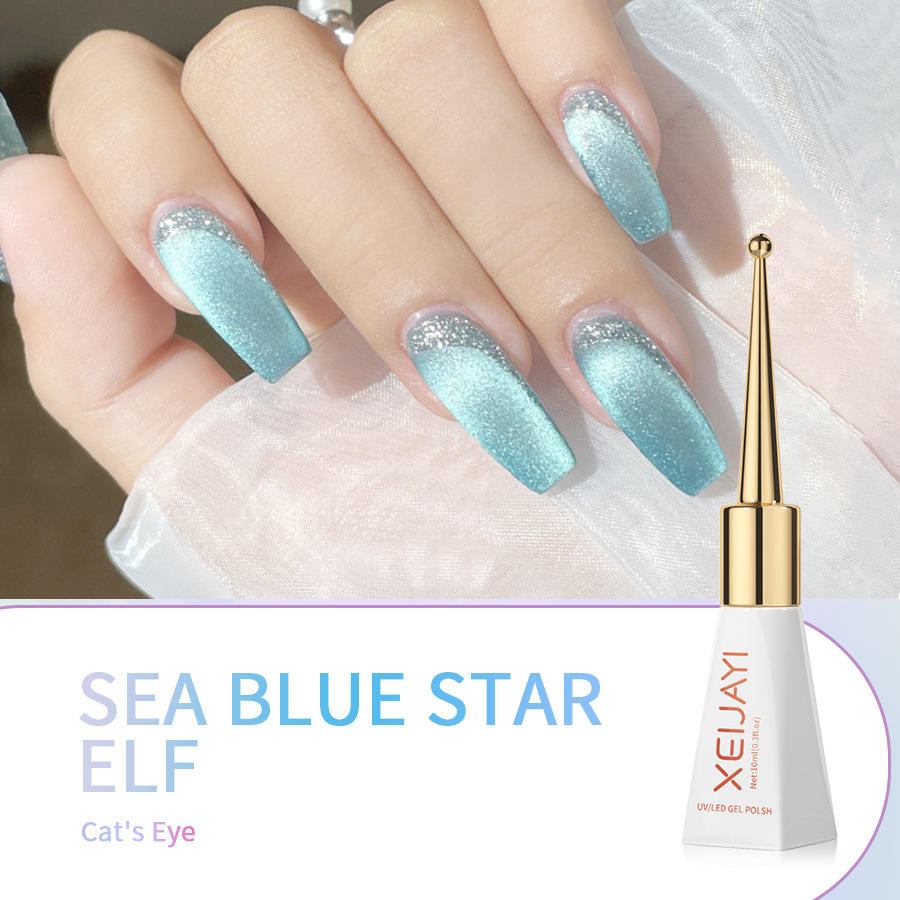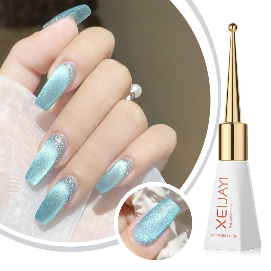 เจลทาเล็บแม่เหล็กคุณภาพสูง 10 มล. สีฟ้า 9D หรูหรา ยูวีเจล LED รับผลิตแบรนด์ส่วนตัว ขายส่ง กาวติดทนนาน สำหรับงาน DIY