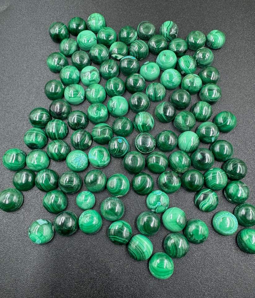 หินอัญมณีสีเขียวมาลาไคต์ทรงหลังเบี้ยสีเขียวเรียบธรรมชาติขนาด10มม.-20มม. อุปกรณ์อัญมณีหลวมขายส่ง
