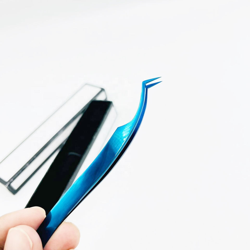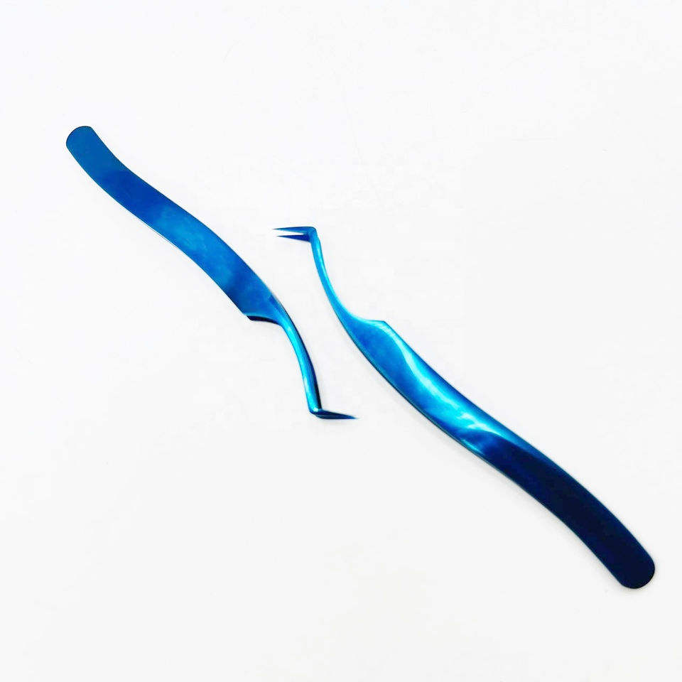 คีมหนีบขนตาสีฟ้าเคลือบพลาสม่าเรียบ10มม. ใช้ติดโลโก้ได้ตามต้องการ
