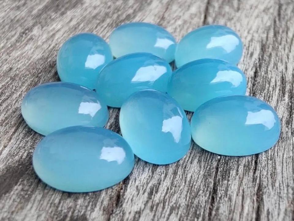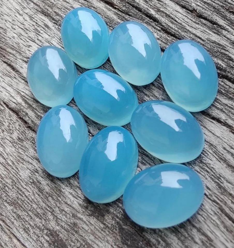 พลอยคาโบชองสีฟ้าธรรมชาติ10ชิ้นอัญมณีทรงรีปรับเทียบแบบหลวม