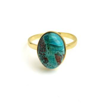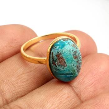 Natural Chrysocolla 925 Sterling Silver Gold Plated Bezel Ring