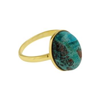 Product Name:Natural Chrysocolla 925 Sterling Silver Gold Plated Bezel Ring