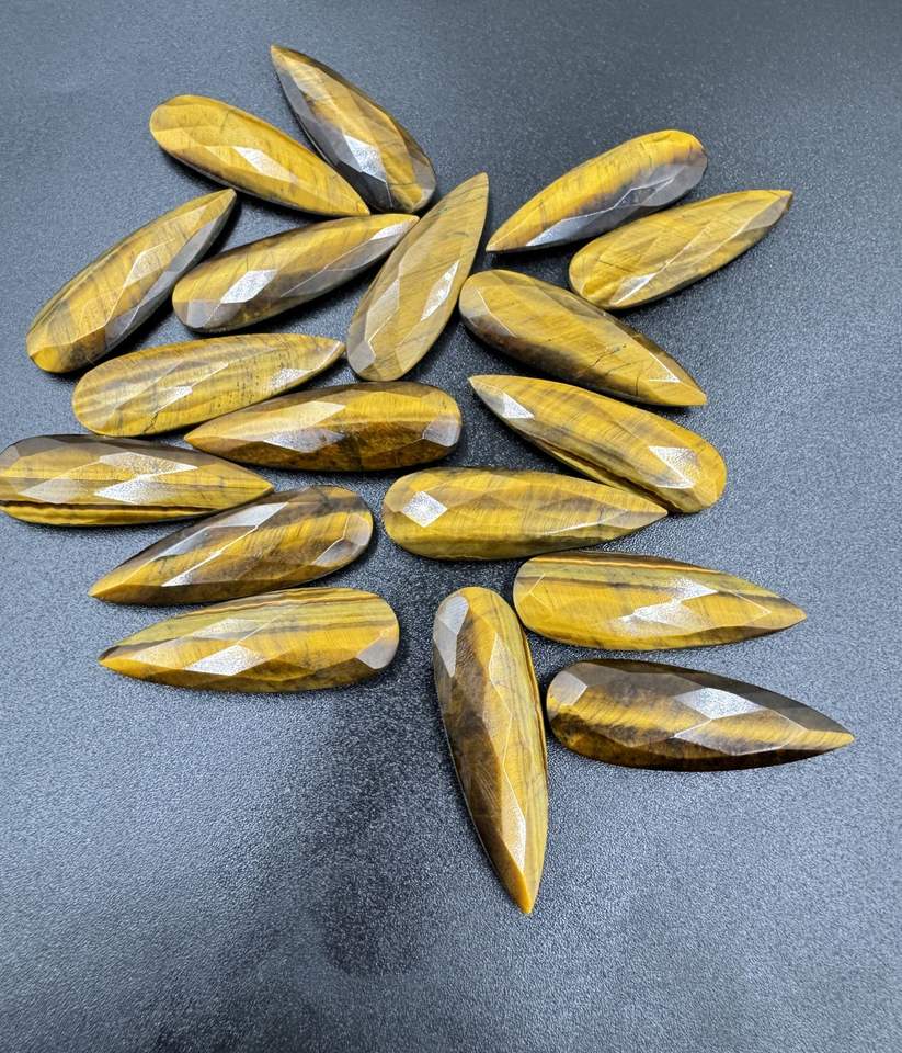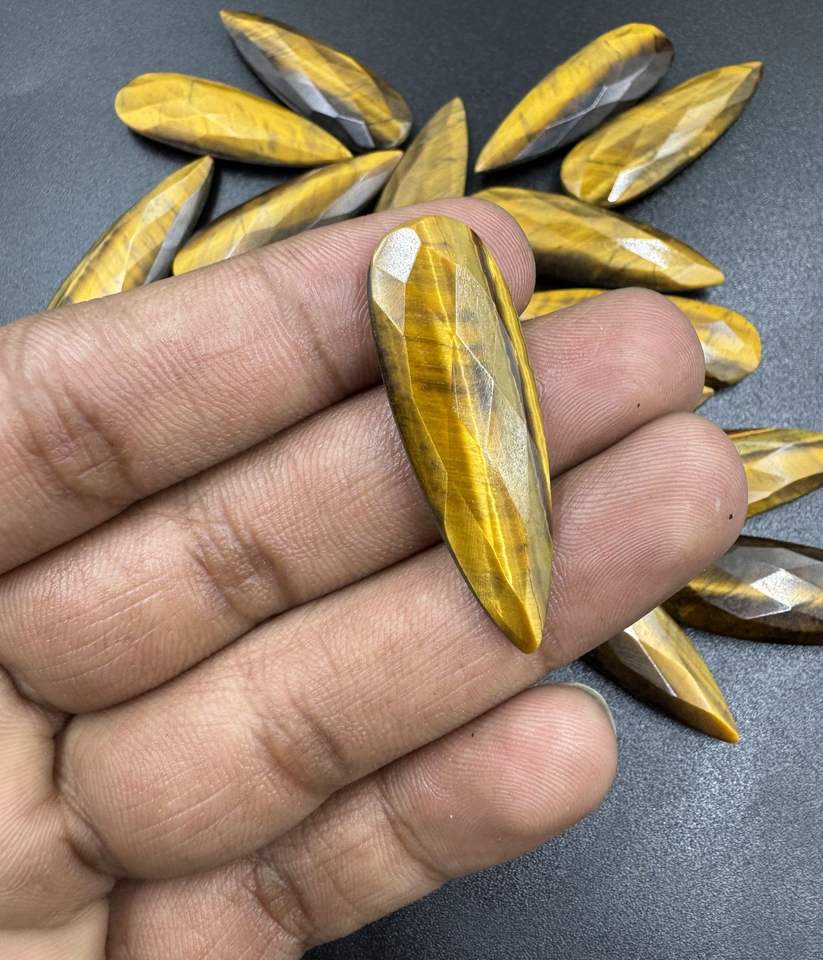 พลอยตาเสือขนาด10X30มม. ทรงลูกแพร์อัญมณีหลวมอัญมณีธรรมชาติที่น่าทึ่งสำหรับการทำเครื่องประดับอัญมณีขายส่ง