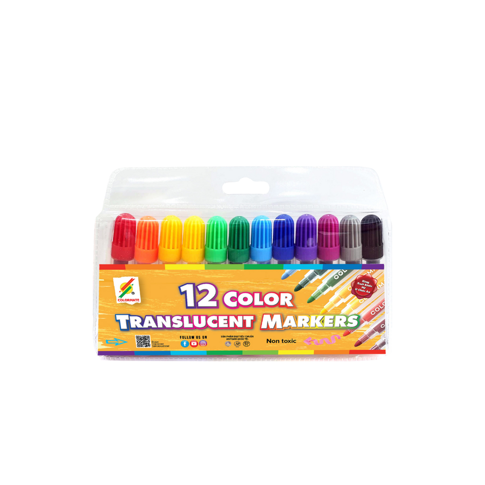 ชุดปากกามาร์กเกอร์สีแอลกอฮอล์โปร่งแสง12สีคุณภาพสูงชุดปากกาปลายพู่กันหลากสีสำหรับวาดรูปดีไซน์การเขียน10มม.