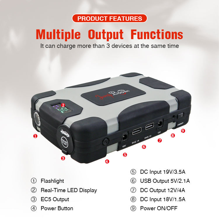 เครื่องจั๊มสตาร์ทรถ12V แบตเตอร์สำรอง18000mAh ความจุสูงพกพาได้