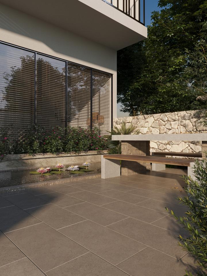 กระเบื้องพอร์ซเลนสีเทาคุณภาพสูง หนา 12 มม. ดีไซน์ทันสมัย กันลื่น ผิวด้าน ทนทาน ใช้งานได้นาน เหมาะสำหรับภายนอกอาคาร ลวดลายหินธรรมชาติ นำเข้าจากเวียดนามโดยตรง