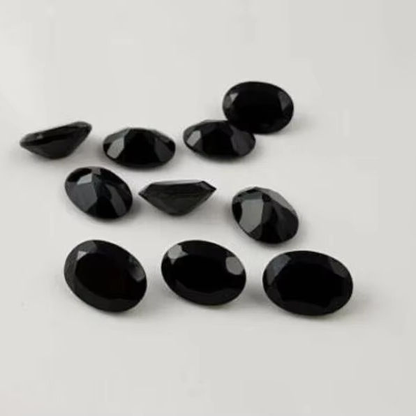 พลอยออนิกซ์สีดำธรรมชาติคุณภาพสูง ขนาด 12x10 มม. รูปทรงวงรีเจียระไน รูเจาะขนาด 0 มม. สำหรับทำเครื่องประดับ ขายส่งจากอินเดีย