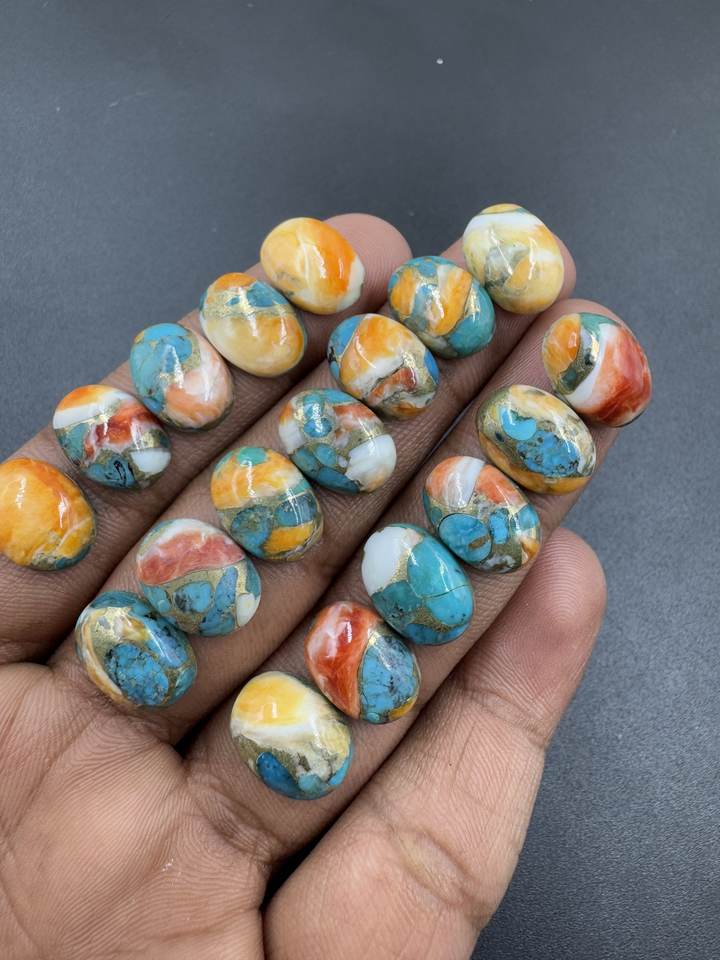 อัญมณีทองแดงหอยนางรมธรรมชาติขนาด12X16มม. ทำจากหินเทอร์คอยส์ทรงรีเรียบตัดเป็นทรงหลวมสำหรับทำเครื่องประดับขายส่งจำนวนมาก