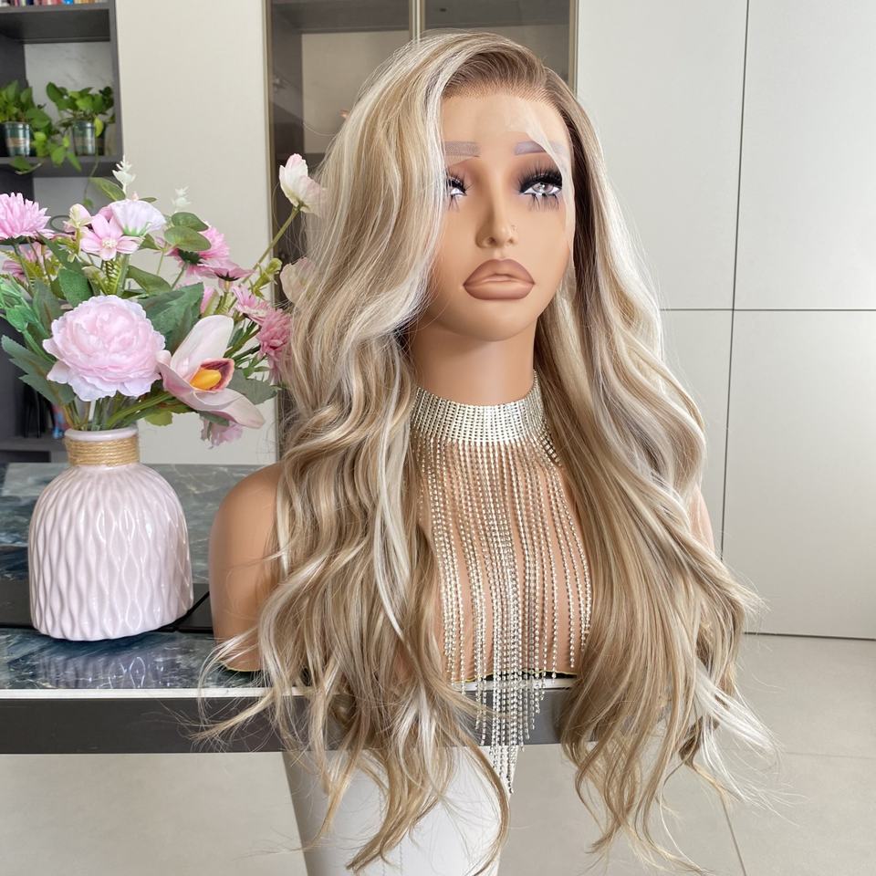 วิกผมคุณภาพสูงแบบใส 13x4 ไม่ต้องใช้กาว ราคาขายส่ง ลอนใหญ่ เนื้อสังเคราะห์ สีธรรมชาติ วิกผมยาว