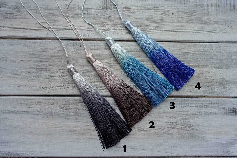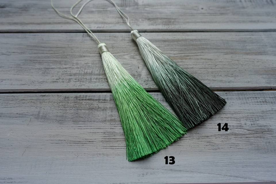 พู่ไหมไล่ระดับสี14ซม. 12ซม. มี2025ตามสั่งสไตล์ใหม่พู่ร้อยใช้สำหรับตกแต่งเสื้อผ้า