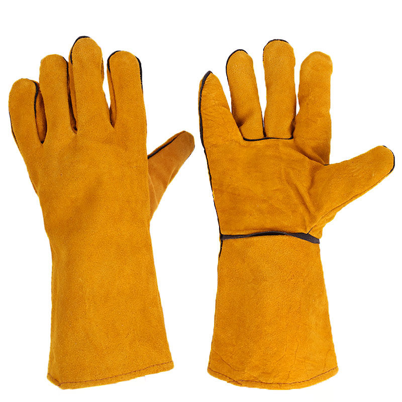 ถุงมือหนังวัวแท้คุณภาพสูง ขนาด 14 นิ้ว สีเหลือง สำหรับงานบาร์บีคิว ป้องกันไฟลวก ป้องกันการบาด ทนไฟ สำหรับงานเชื่อม