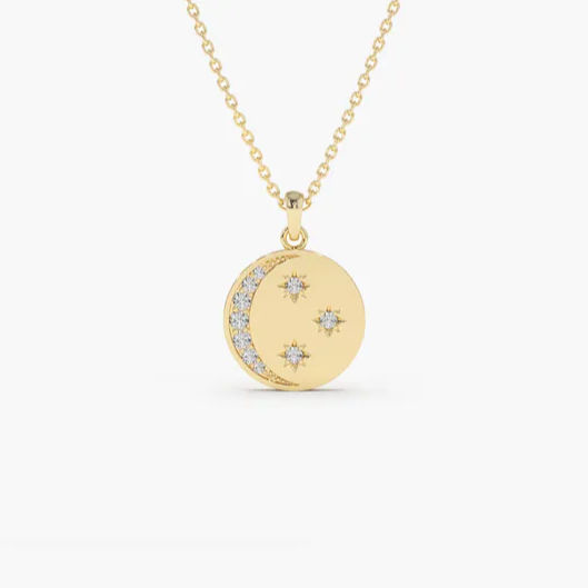 คุณภาพสูง14kt เครื่องประดับเพชรสีทองแท้จี้ดวงจันทร์และเสี้ยวสร้อยคอเพชรดีไซน์กลมสำหรับผู้หญิงจากอินเดีย