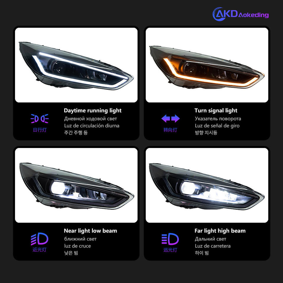 ไฟหน้า LED 15-18สำหรับ Ford Focus, ไฟสำหรับวิ่งกลางวันไฟซีนอนสัญญาณเลี้ยวไฟ Lens-24V คู่ไฟสีขาว6000K