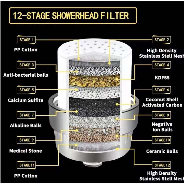 เครื่องกรองน้ำฝักบัวคุณภาพสูง 15 ขั้นตอน ใช้ถ่านกัมมันต์ ช่วยฟื้นฟูน้ำ ใช้ในบ้าน ผลิตจากพลาสติก เป็นมิตรกับสิ่งแวดล้อม ลดคลอรีนในครัวเรือน