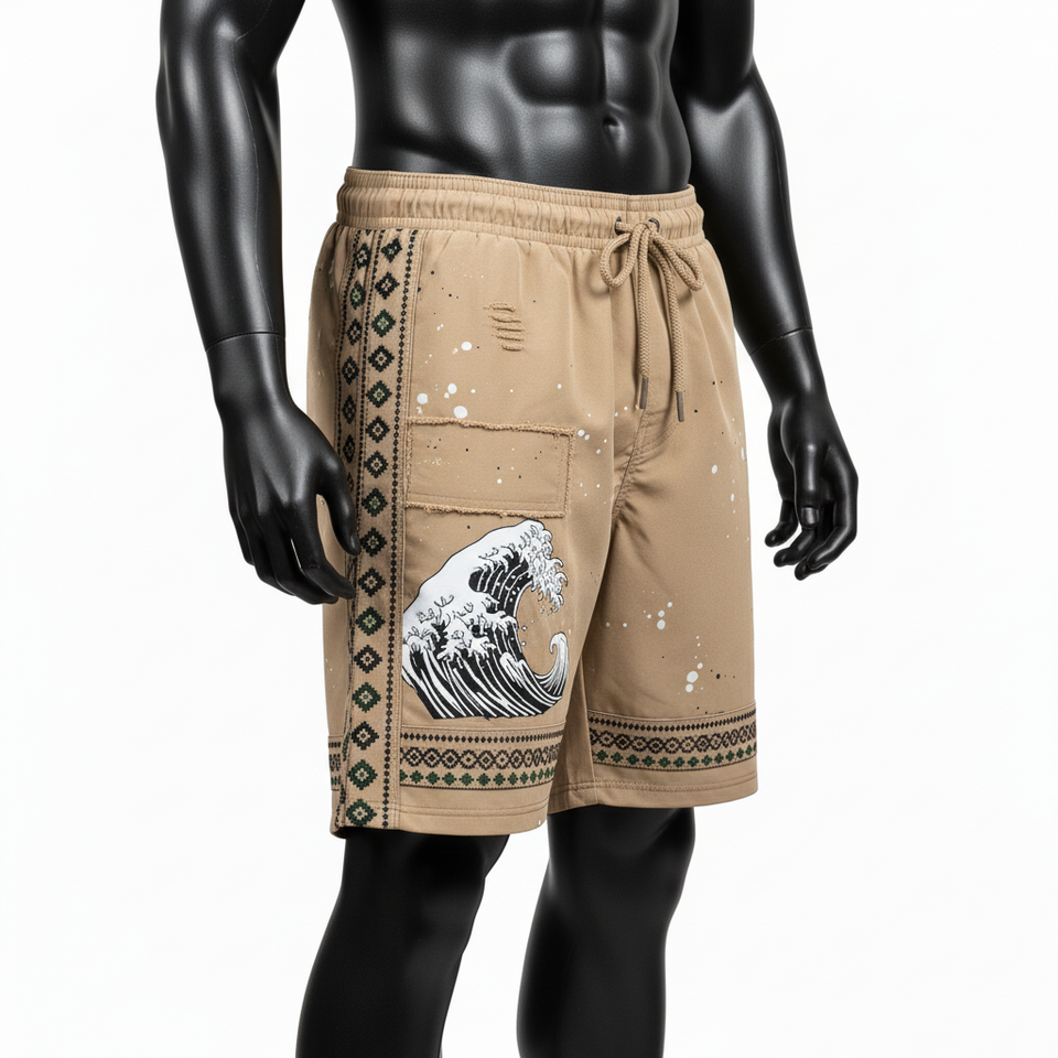 กางเกงขาสั้นร้อนลวดลาย