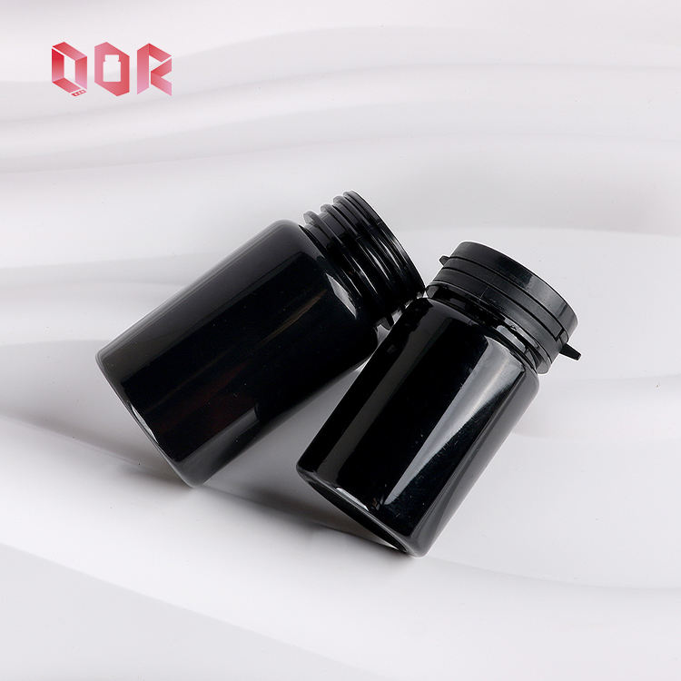 ขวดยาแคปซูลเกรดอาหารสัตว์เลี้ยงสีดำขนาด150มล. พร้อมปรับแต่งฝาแบบดึง
