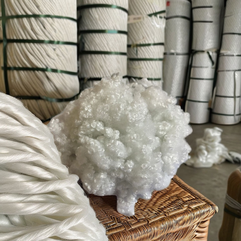 เส้นใยโพลีเอสเตอร์รีไซเคิลคุณภาพสูง 15D HCS สีขาว แบบกลวง ซิลิโคนิซ์ สำหรับวัสดุยัดไส้