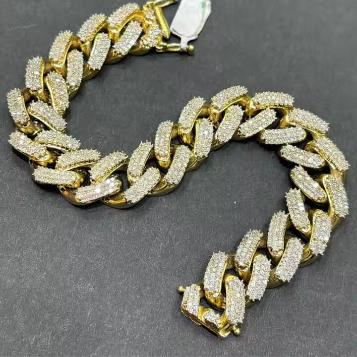 คุณภาพสูง16มม./7นิ้วเงินมอยส์ซอไนท์กำไลข้อมือสตรีทร็อคน้ำแข็งสไตล์ฮิปฮอปเครื่องประดับทองขายส่ง