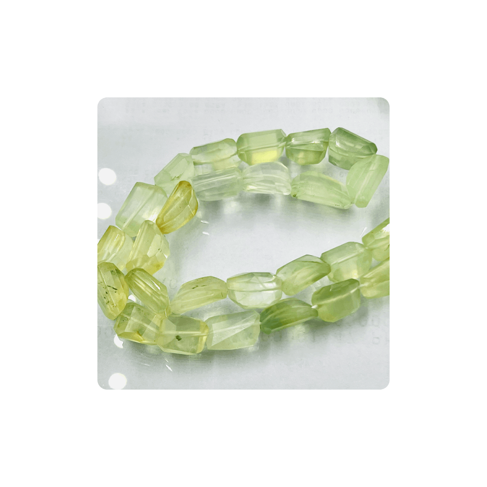 ลูกปัดนักเก็ต Prehnite เหลี่ยมเพชรพลอยสีเขียว17นิ้วคุณภาพสูงขนาด12-15มม. โดยประมาณสำหรับการทำเครื่องประดับ