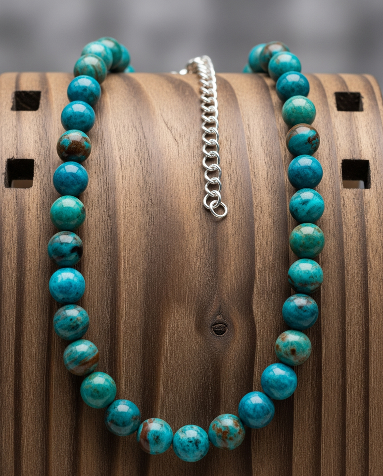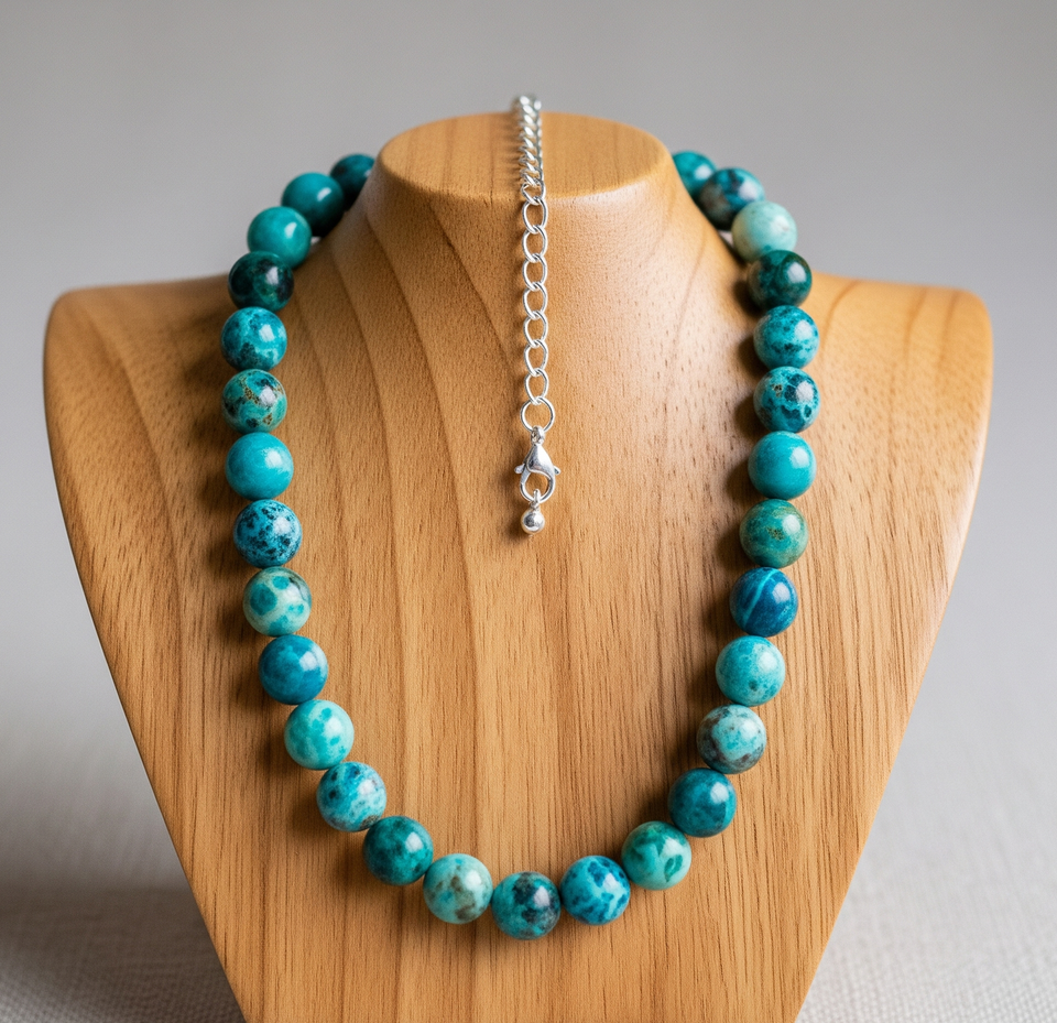 สร้อยคอ925เงิน18นิ้วคุณภาพสูงสำหรับผู้หญิงดีไซน์แบบมือลูกปัดหินคริสโซโคลลาธรรมชาติแฟชันน้ำจืด