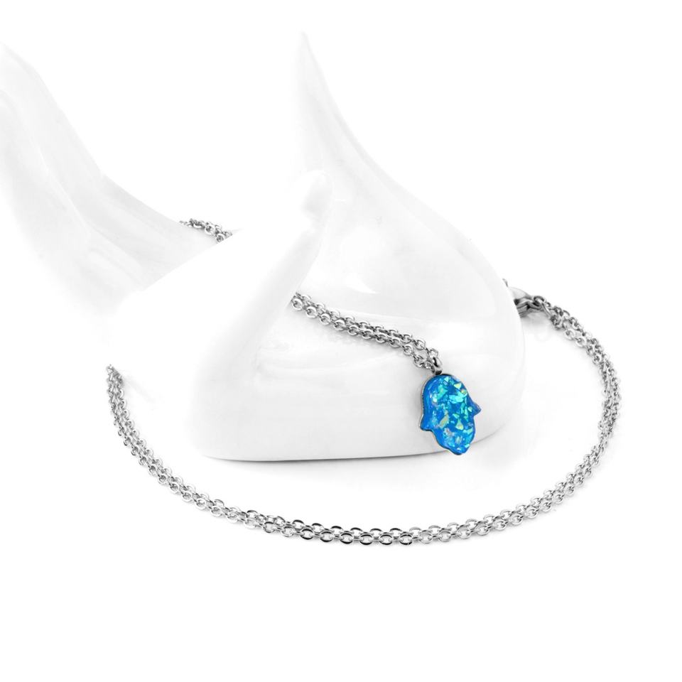 สร้อยคอจี้รูปฝ่ามือประดับเปลือกหอยอะบาโลนสีน้ำเงิน ทำจากสแตนเลสสตีลชุบทอง 18K คุณภาพสูง สำหรับผู้หญิง