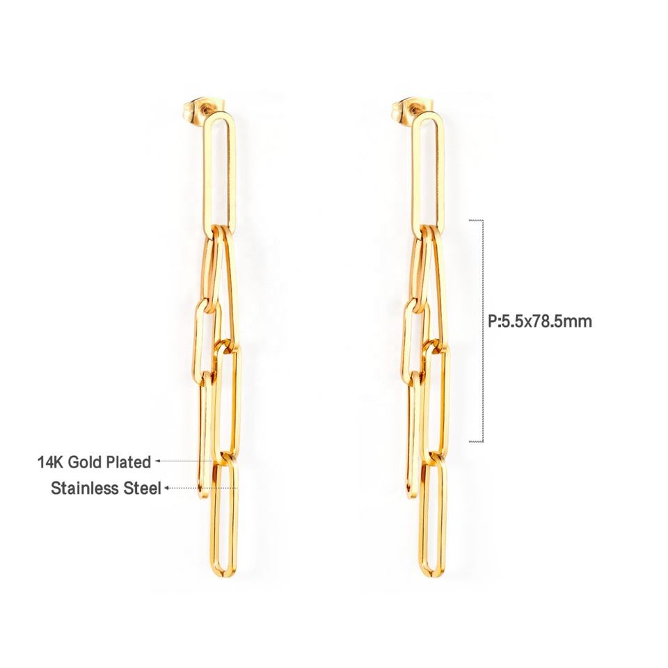 ต่างหูห้อยระย้าคุณภาพสูง ชุบทอง 18K บนสแตนเลสสตีล สำหรับผู้หญิง ดีไซน์โซ่ยาวประดับพู่ห้อยเก๋ไก๋ทันสมัย