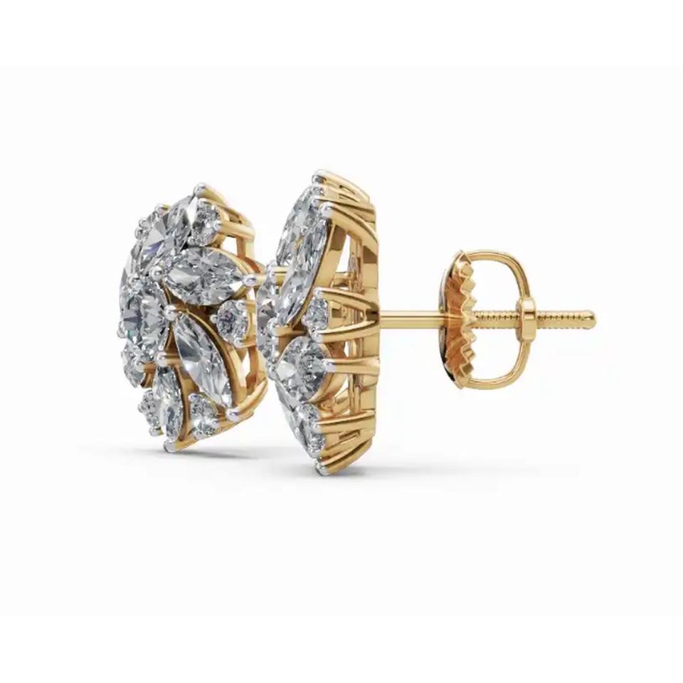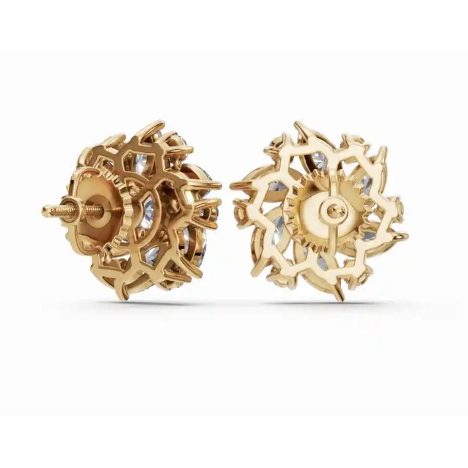 คุณภาพสูงต่างหูเม็ดเดี่ยวประดับเพชรแบบกลีบ18KT สีทองวาเลเรียแกรนด์กรังด์ปรีซ์ B2B เครื่องประดับสำหรับปลูกในห้องปฏิบัติการขายส่ง
