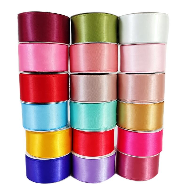 ริบบิ้นผ้าซาตินโพลีเอสเตอร์คุณภาพสูง 196 สี ขนาด 4 ซม. 3.8 ซม. 1.5 นิ้ว 1-1/2 นิ้ว 100 หลา/ม้วน สำหรับตกแต่งห่อของขวัญ