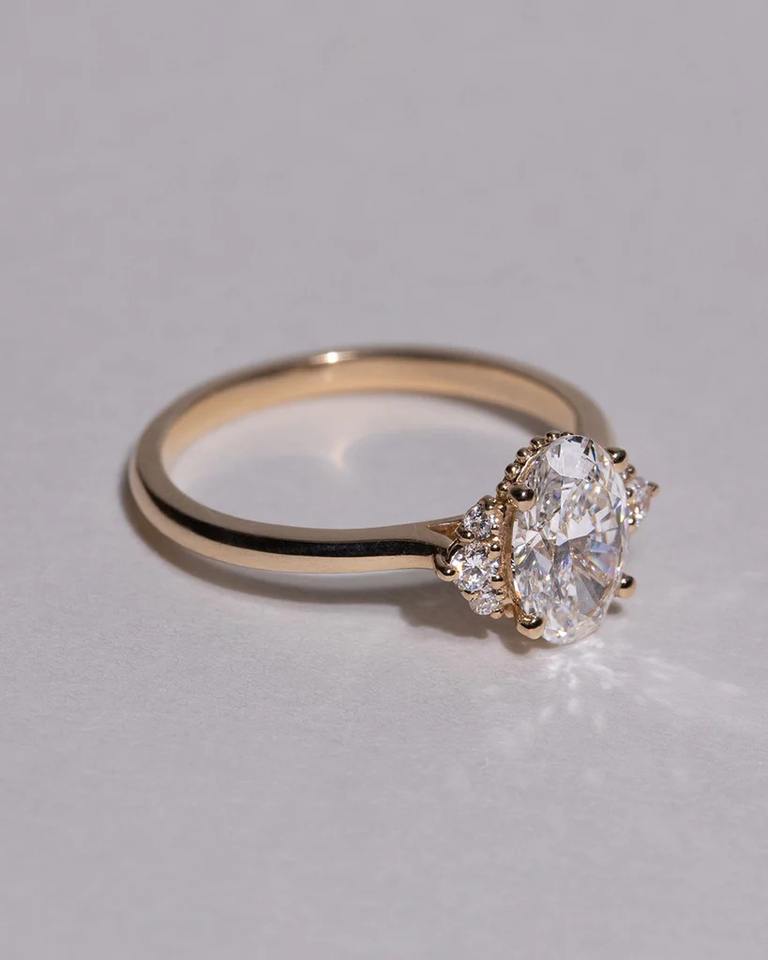 แหวนเพชรโมอิสสี F แหวนแต่งงานทอง14K ทรงวงรีตัดเป็น1Ct สั่งซื้อจำนวนมากออนไลน์