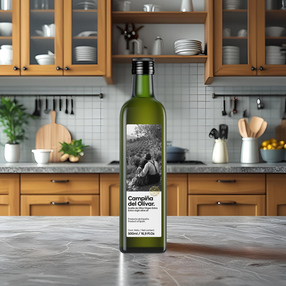 แก้ว1L น้ำมันมะกอกบริสุทธิ์ "campiña Del olivar" marasca สำหรับทำอาหารและใส่น้ำสลัด