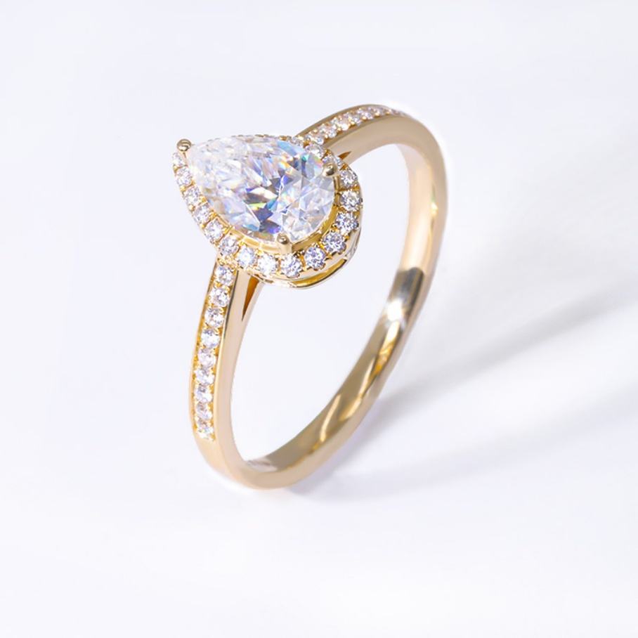 แหวนหมั้นเพชรโมอิสซาไนต์ทรงลูกแพร์คุณภาพสูง 1 กะรัต ประดับด้วยทองคำแท้ 18k สำหรับงานแต่งงาน