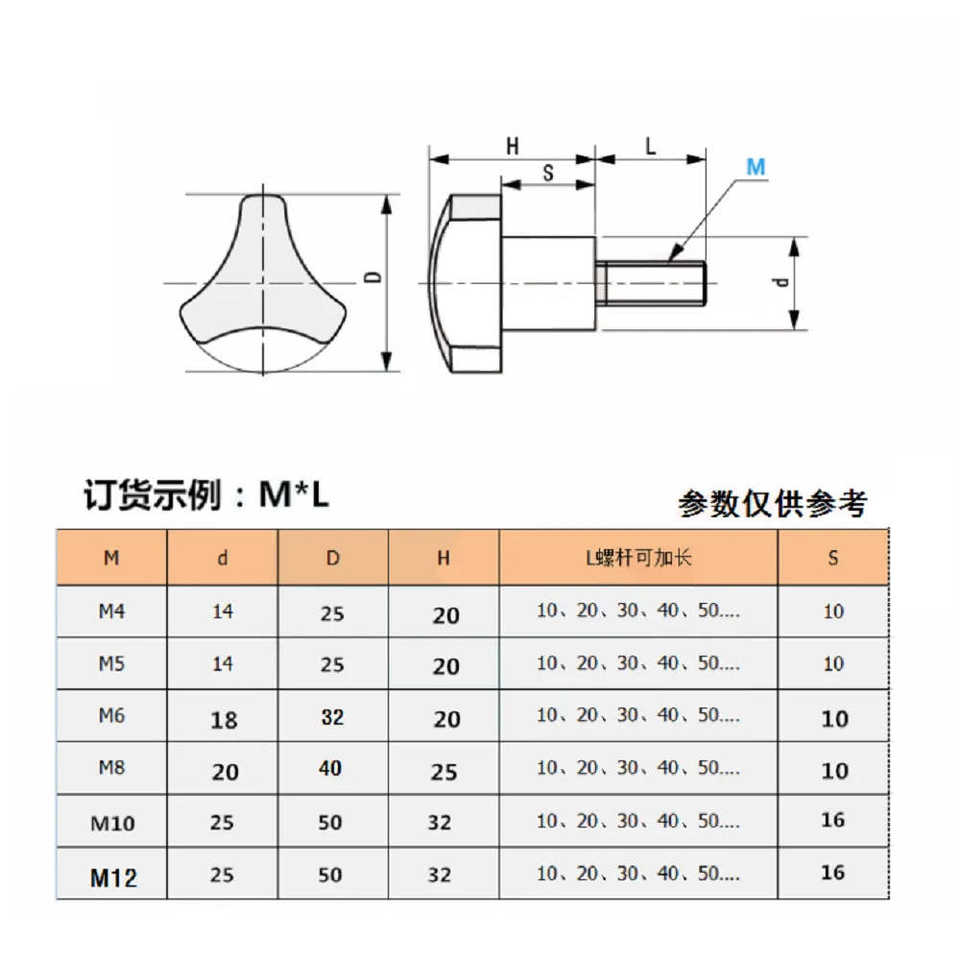 ลูกบิดโค้ง M5-M12 1ชิ้นด้ามจับสามเหลี่ยมทำจากสเตนเลสสตีล304พร้อมสกรูยึดด้วยมือแบบเบคิไลต์ทั่วไป