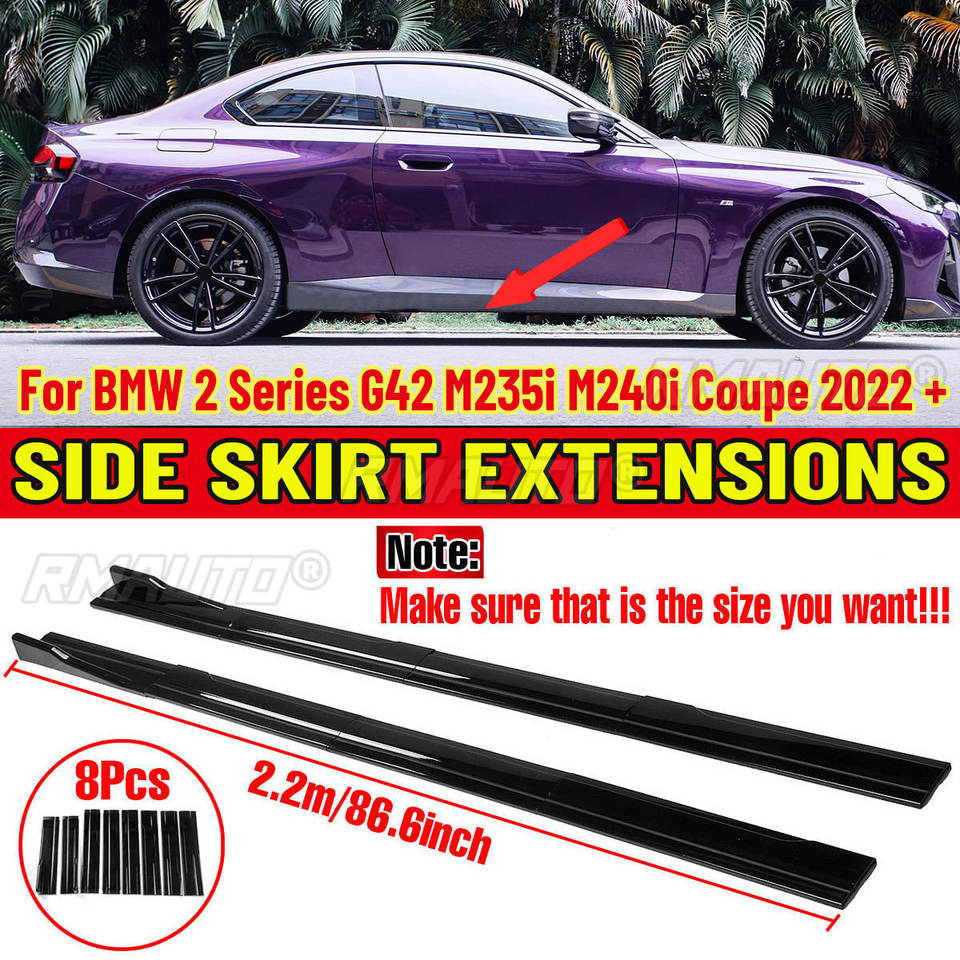 สเกิร์ตข้างคุณภาพสูงขนาด 2.2 เมตร พร้อมครีบแยกอากาศและดิฟฟิวเซอร์ สำหรับ BMW ซีรีส์ 2 G42 M235i M240i Coupe ปี 2022 ขึ้นไป