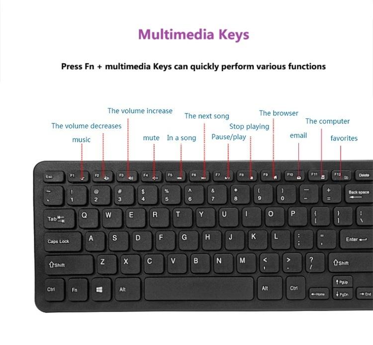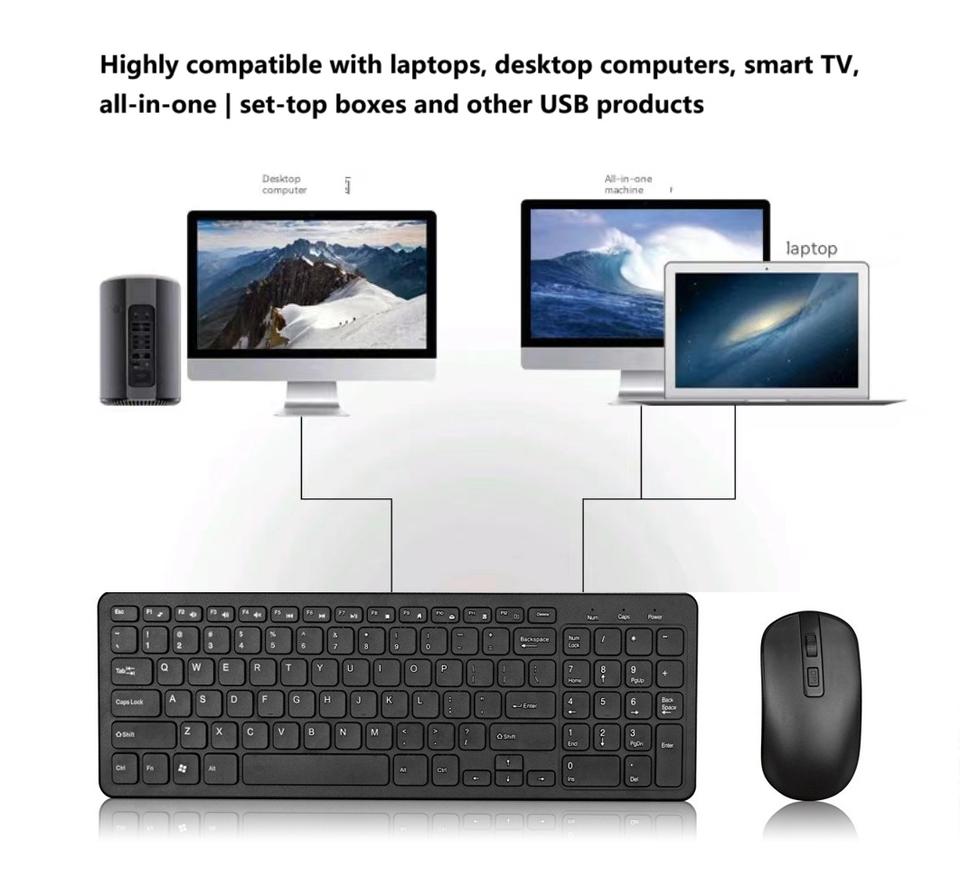 คีย์บอร์ดและเมาส์ช็อคโกแลตไร้สายบาง2.4G สำหรับเล่นเกมและใช้ในสำนักงานอเนกประสงค์