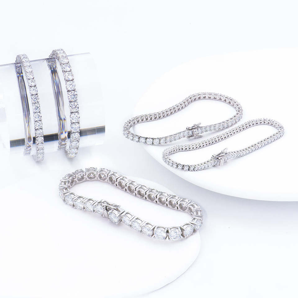สร้อยข้อมือเทนนิสทรงกลมเจียระไนแบบบริลเลียนท์คุณภาพสูง ขนาด 2-6 มม. เงินแท้ 925 VVS VVS1 แท้ ผลิตด้วยเทคนิค CVD HPHT ของขวัญสุดหรู