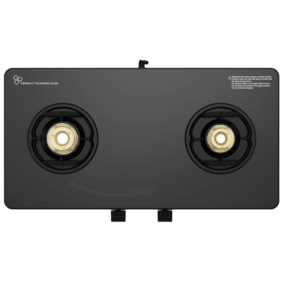 High Quality 2-Burner Glass Top Gas Stove Compact Kitchen Cooktop with Manual Ignition Brass Burner Direct B2B Wholesale India