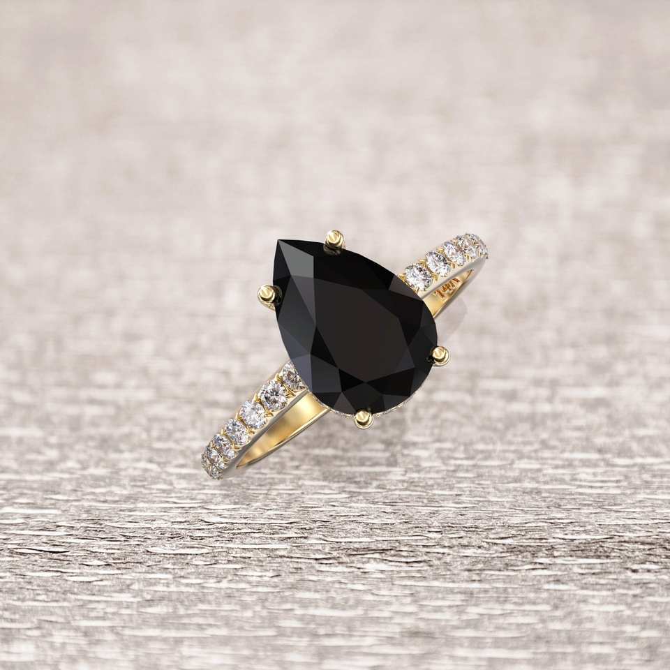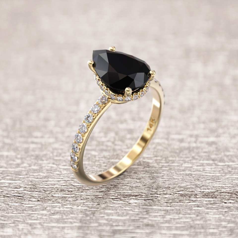 คุณภาพสูง2กะรัตลูกแพร์สีดำ Moissanite หมั้นแหวนทอง14K 4ง่ามไมโครปูเครื่องประดับงานแต่งงานดีไซน์เป็นจำนวนมาก