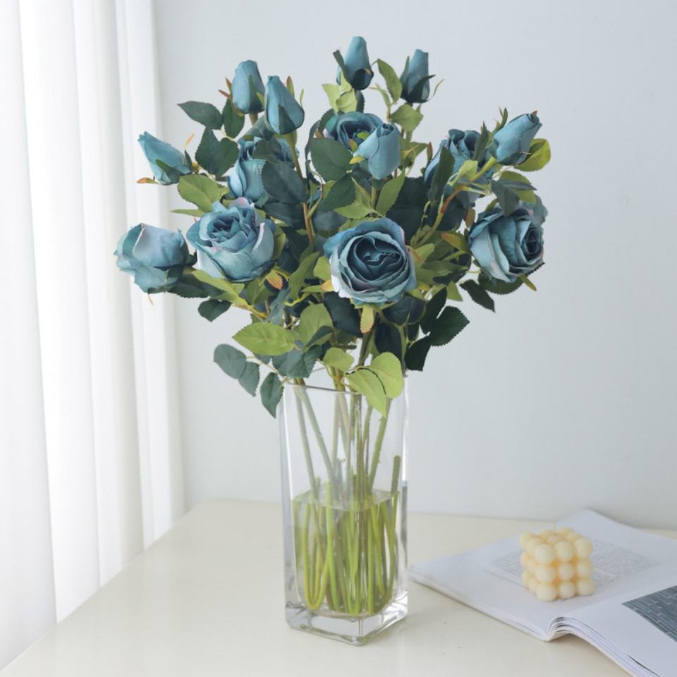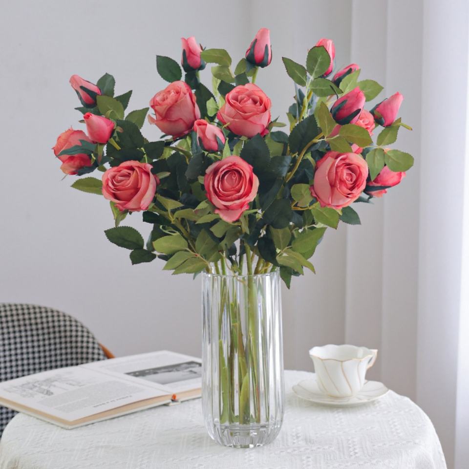 ดอกกุหลาบบัลแกเรียประดิษฐ์คุณภาพสูง 2 หัว สำหรับตกแต่งบ้านหรู ขายส่งจากโรงงานโดยตรง
