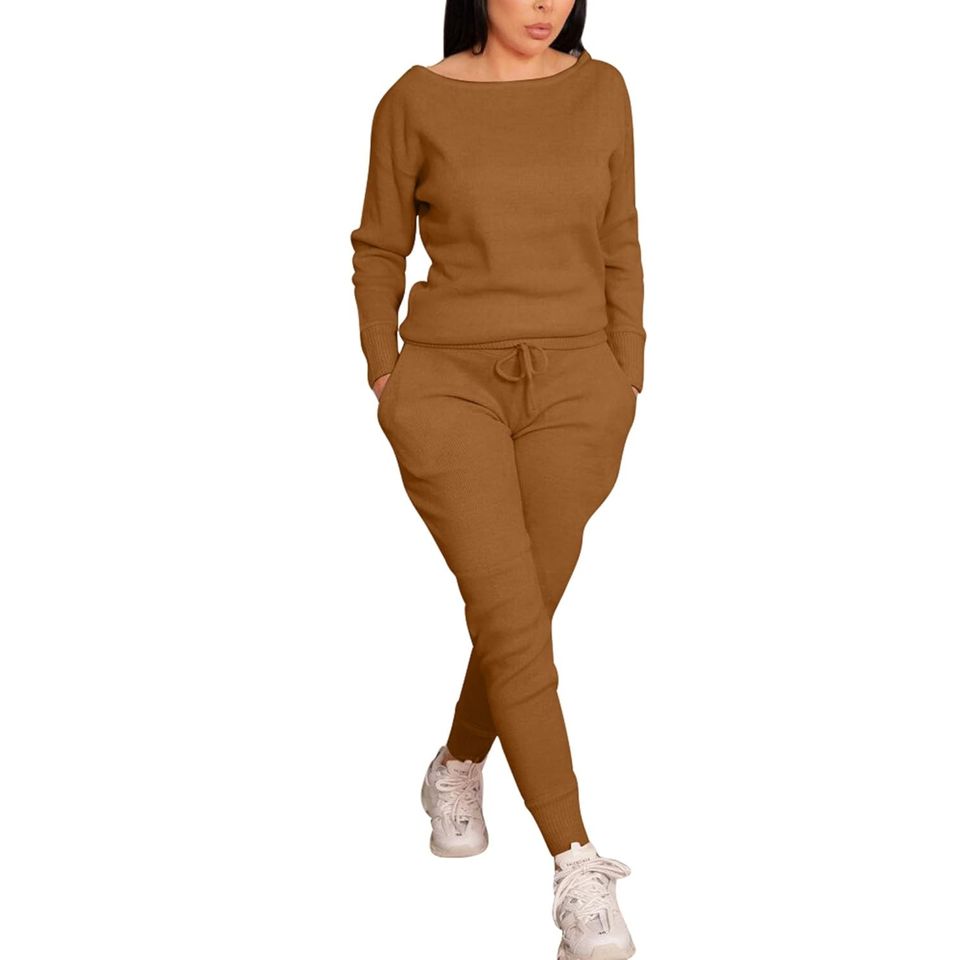 ชุดวอร์ม2ชิ้นสำหรับผู้หญิงเสื้อแขนยาวและกางเกงวิ่งระบายอากาศชุดเสื้อนอกทอสำหรับฤดูหนาว