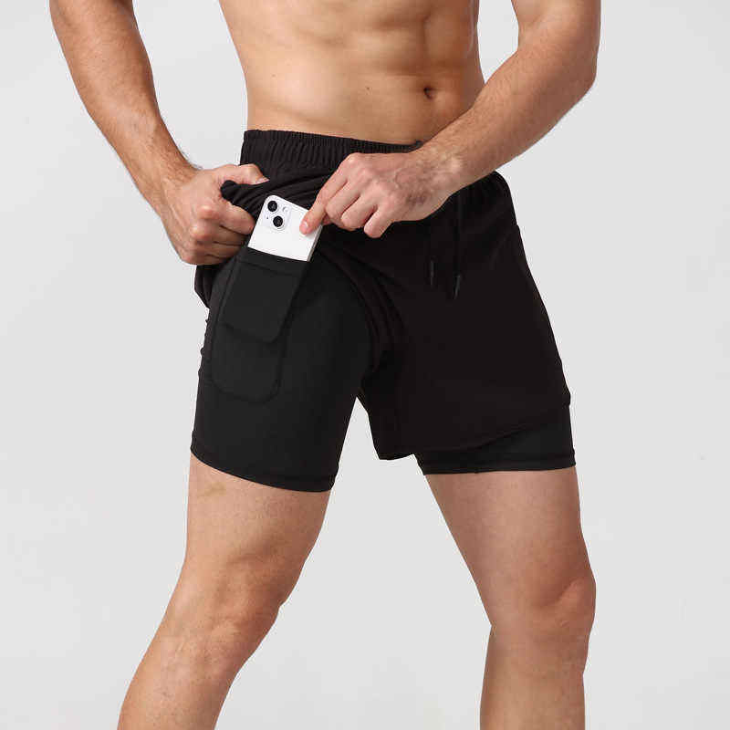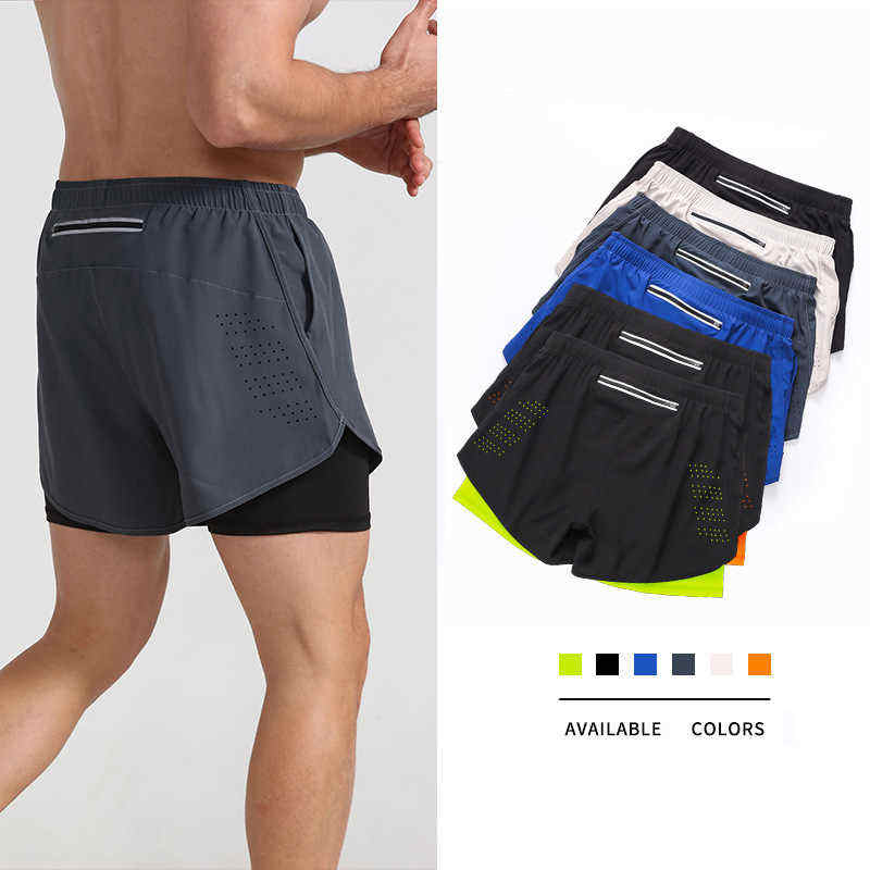 กางเกงขาสั้นออกกำลังกายแบบ2อิน1มีกระเป๋าหลังแห้งเร็วระบายอากาศได้ดีกางเกงขาสั้นสำหรับออกกำลังกายในยิมของผู้ชาย