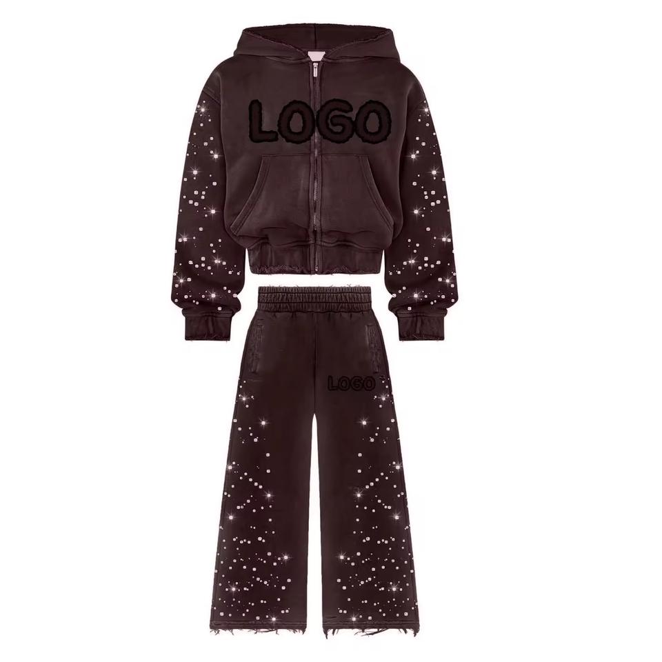 High Quality 2026 New Customized Breathable Winter Rhinestone Men's Sweatshirt Joggers Tracksuit Set Streetwear for sale 2026