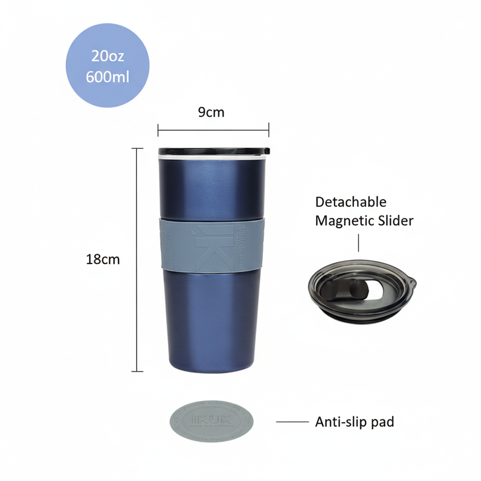 แก้วน้ำสแตนเลสสองชั้นคุณภาพสูง ขนาด 20 ออนซ์/600 มล. เก็บความร้อน/เย็นได้นาน 4-6 ชั่วโมง ฉนวนสุญญากาศ 8-10 ชั่วโมง พร้อมเคลือบพอร์ซเลน