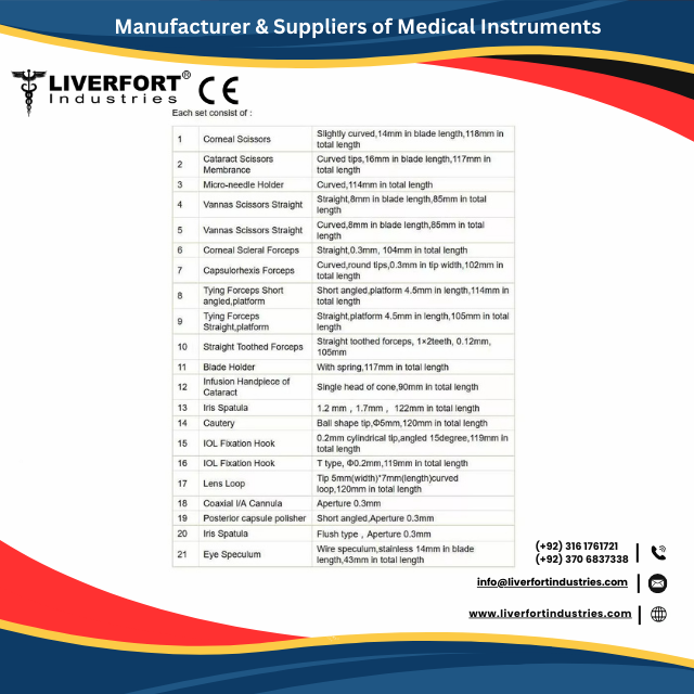 ชื่อผลิตภัณฑ์:ชุดตาต้อกระจกไทเทเนียม21ชิ้นพร้อมกล่องเคส