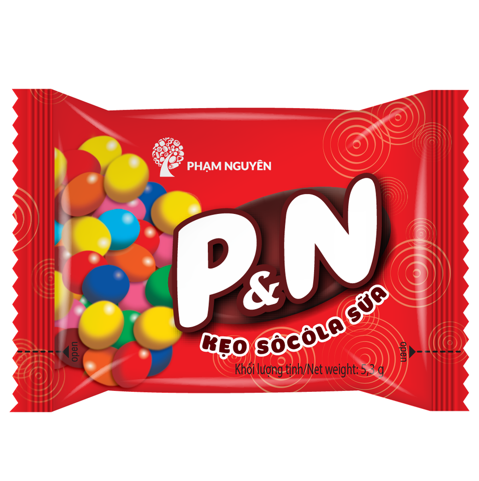 ขนมชอกโกแลตทรงลูกบอล216กรัมขนมเวียดนาม P & N นมเด็กเคลือบน้ำตาลกรอบหวานสีสันสดใส12ถุง