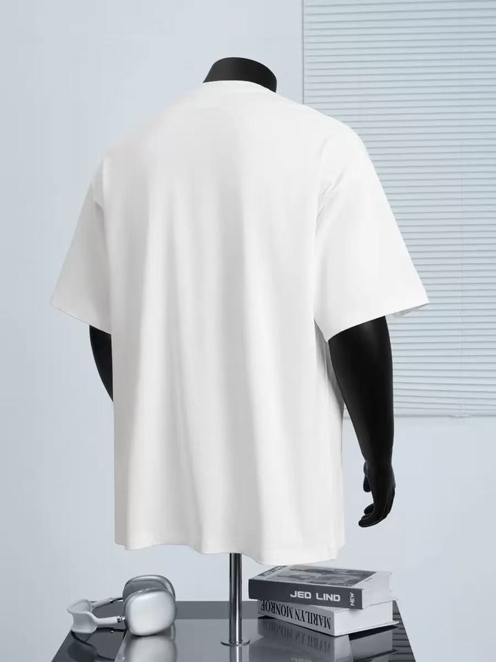 เสื้อยืดคอกลมโอเวอร์ไซส์พิมพ์ลายคุณภาพสูง 220 GSM ผ้าคอตตอนผสมโพลีเอสเตอร์เนื้อหนัก ทรงหลวม ระบายอากาศได้ดี รับสกรีนโลโก้ตามสั่ง