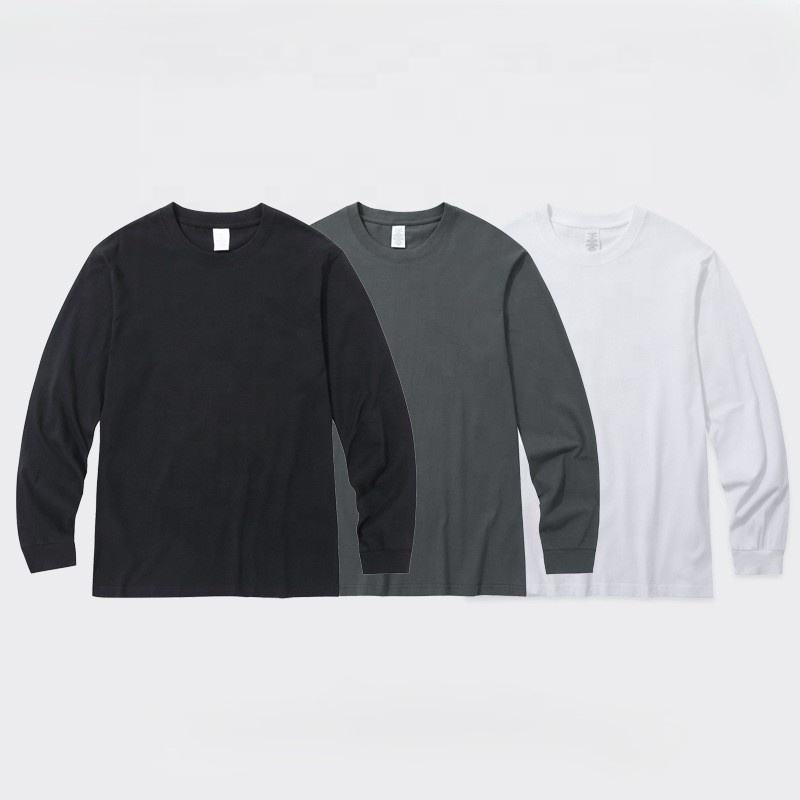 High Quality 230gsm 100% Cotton Unisex Essential Blank Lounge Shirt Casual Solid Tee Long Sleeve Crew Neck T-shirt For Men Women