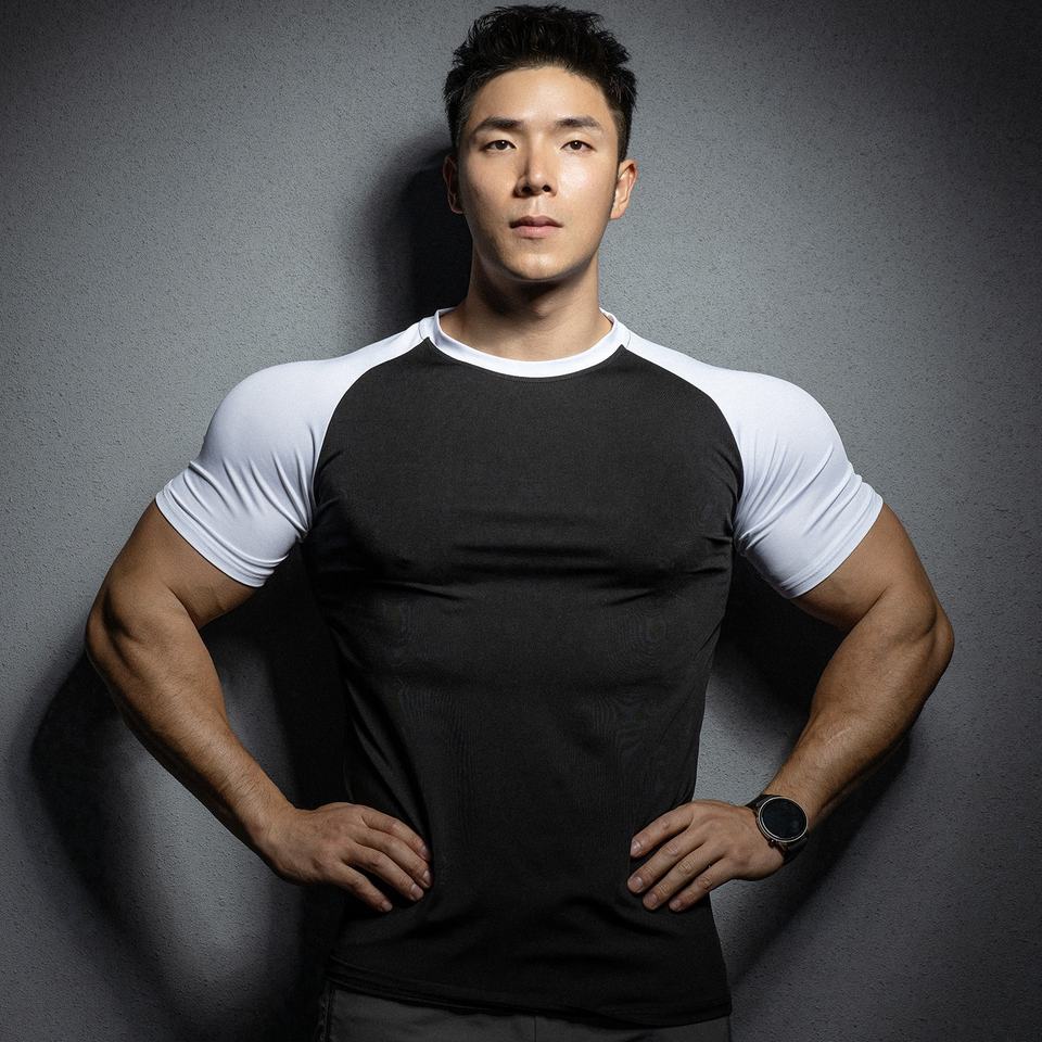 เสื้อ230gsm ผ้าไหมสแปนเด็กซ์5% 95% ผ้าโพลีเอสเตอร์สำหรับผู้ชายใส่กระชับกล้ามเนื้อแห้งเร็วเสื้อเพาะกาย