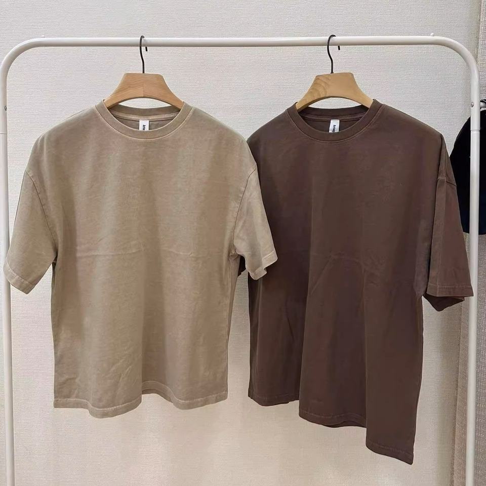 High Quality 250gsm 100% Cotton Drop Shoulder Oversized Sand Wash Distressed Vintage Crew Neck T-Shirt For Men OEM Logo Printing