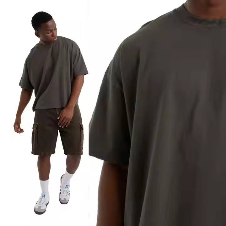 High Quality 250gsm Boxy Fit Oversized T Shirt Men Cropped Length Drop Shoulder 100% Cotton Blank Tee Custom Logo Screen Print